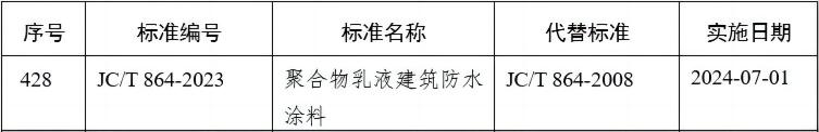 | 近日,公司參與編制的行業標準JC/T 864-2023《聚合物乳液建筑防水涂料》于2023-12-29正式發布,2024-07-01開始實施。無規矩不成方圓,標準的制定和實施將支撐穩定的市場秩序和社會效益,幫助相關行業整體水平提高。 |